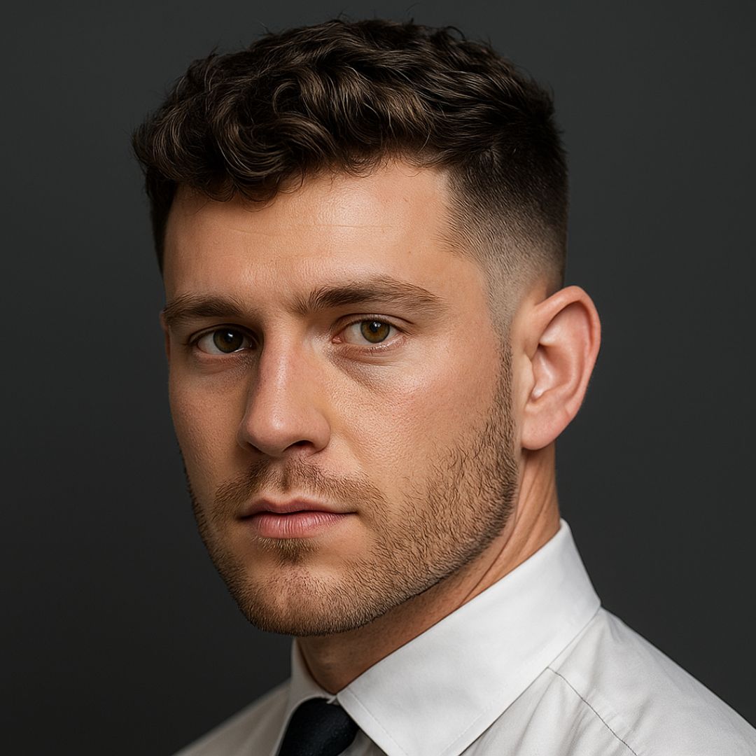 A timeless cut that never fails: a well-marked side part, polished sides, and moderate volume on top. It’s elegant, versatile, and effortlessly confident.