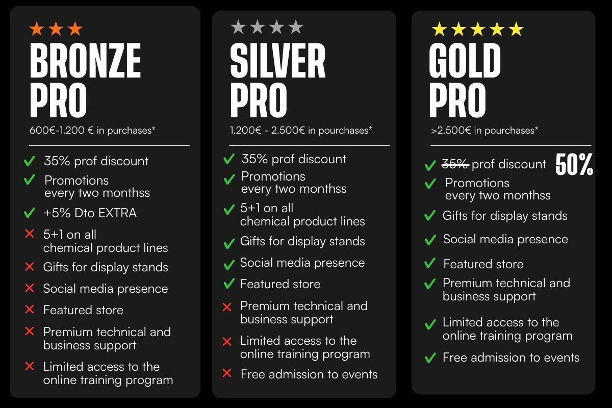 At the Gold Pro level, exhibitor gifts will be awarded based on the customer’s order, at Beardburys’ discretion. Full access to online training and free participation in events will be subject to availability, event specifics, and location, as determined by the brand.