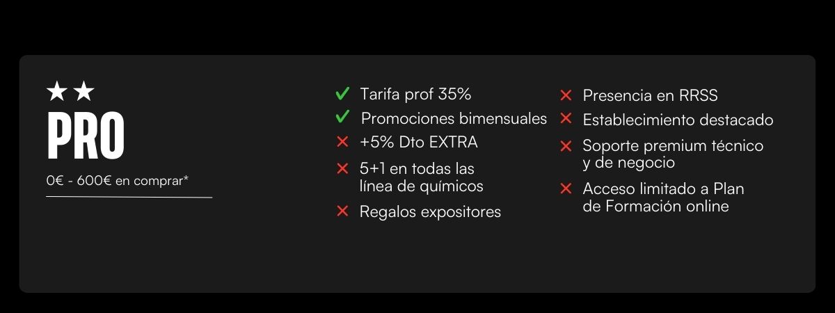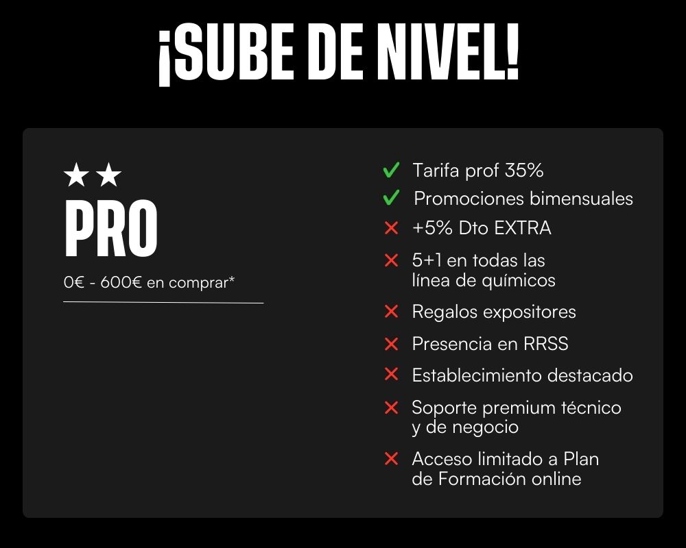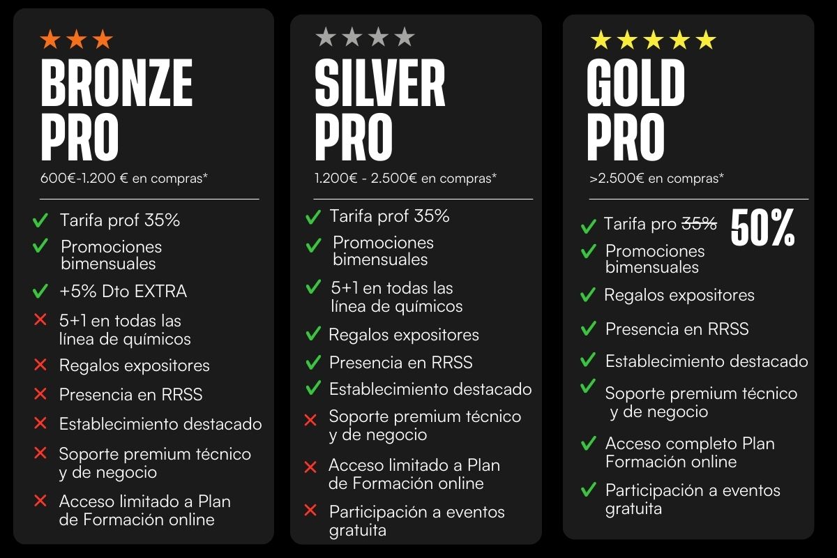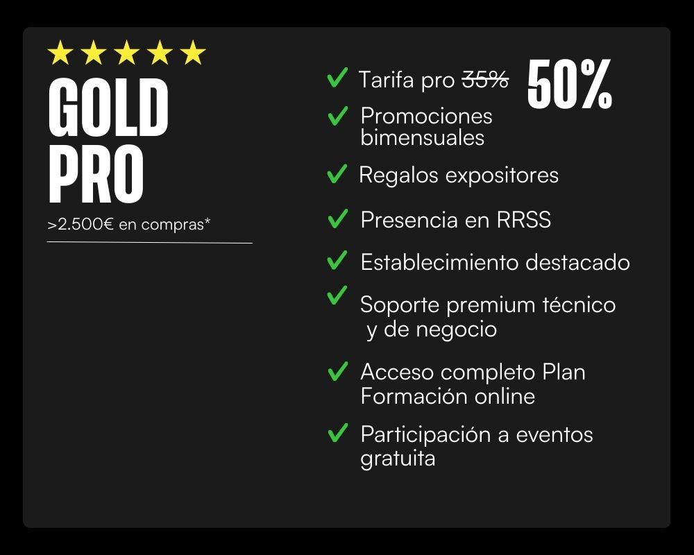 En el nivel Gold Pro, los regalos de expositores se asignarán en función del pedido realizado por el cliente, según el criterio de Beardburys. El acceso completo a la formación online y la participación gratuita en eventos estarán sujetos a la disponibilidad, características del evento y ubicación, según determine la marca.