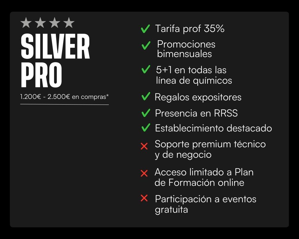 En el nivel Silver Pro, los regalos de expositores se asignarán en función del pedido realizado por el cliente, según el criterio de Beardburys. La inclusión como establecimiento destacado en la web estará sujeta al volumen de pedidos y a la valoración de la marca.