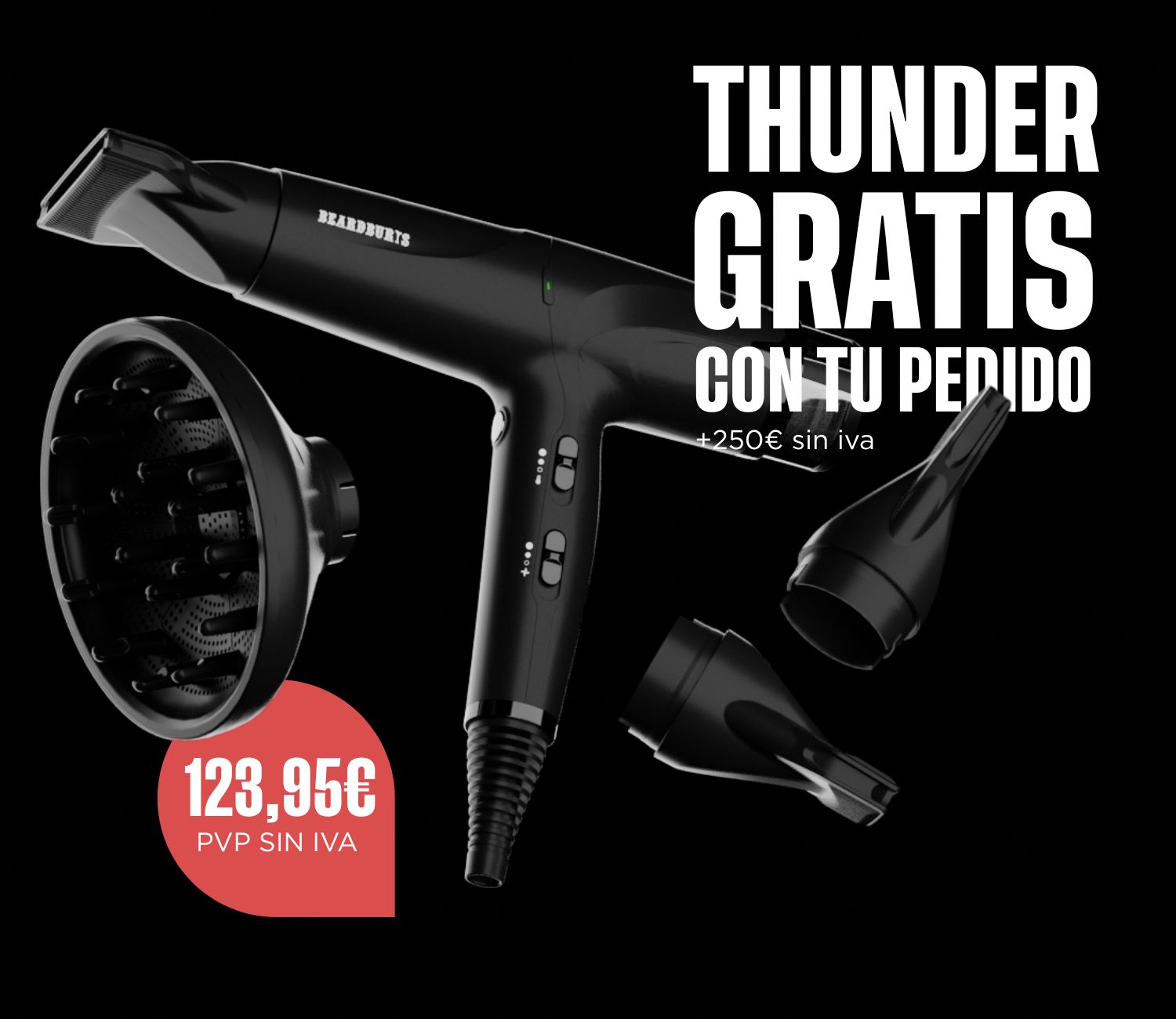 Compra 250€ + iva en productos químicos Beardburys y llévate el secador THUNDER GRATIS