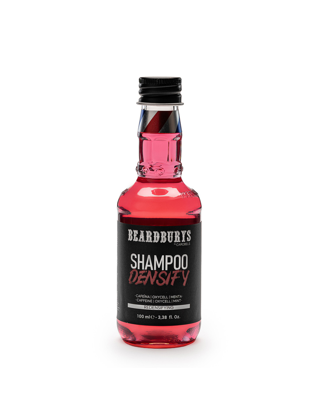 Beardburys Densify Champú Anticaída y Redensificante: champú sin parabenos que ayuda a frenar la caída del cabello y fortalecer la fibra capilar. Con cafeína para activar la microcirculación y Oxycell para oxigenar el cuero cabelludo, mejora la salud del folículo. El aloe vera aporta hidratación y suavidad, mientras su aroma mentolado proporciona frescor y vitalidad.